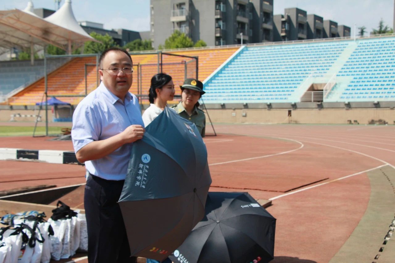 随后,学院领导为同学们送上精心设计的晴雨伞,在炎炎夏日中带来丝丝凉意。一把晴雨伞既表达了学院的关怀和人文精神,也是对大家日夜艰苦训练的肯定和赞扬。