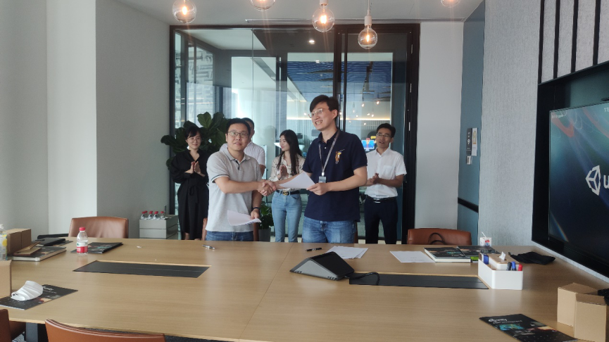 高利鹏老师讨论了高校与企业间如何通过“Unity技术扶持计划”开展校园实验室建设、Unity技术的深度使用、教育专家培训、作品展示、校园大使培育等合作,并签订了人才培养合作交流备忘录。