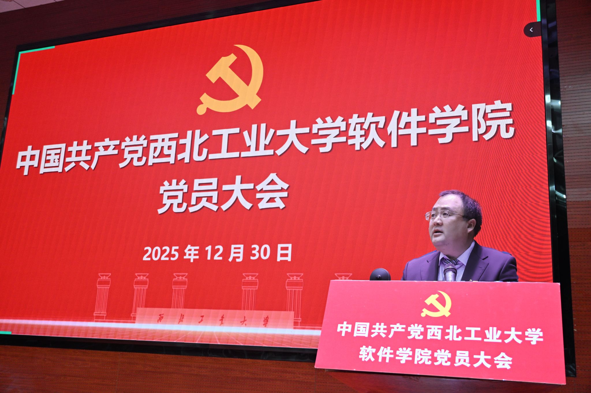 全体师生党员参会,大会由学院院长郑江滨主持。