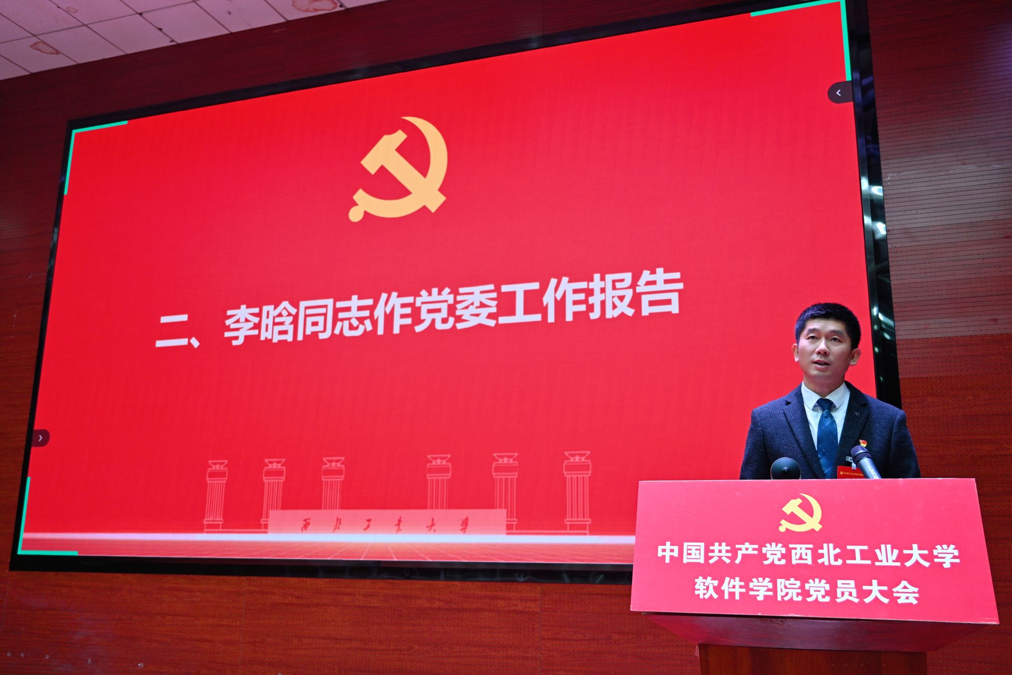 李晗同志代表学院党委向大会作题为“凝心聚力担使命 改革创新谱新篇 为高质量建设国家特色化示范性妖精动漫