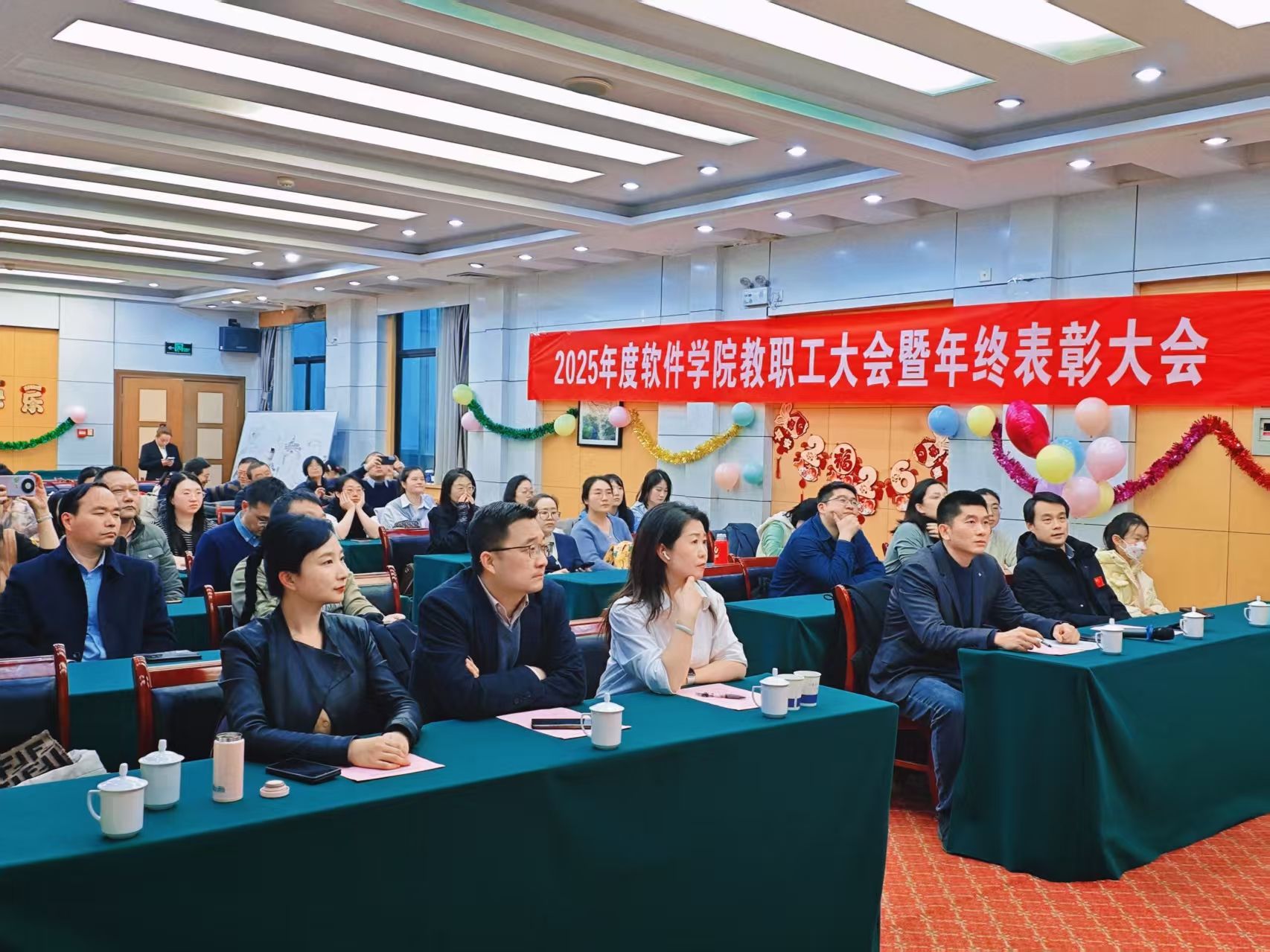 教职工大会暨年终表彰大会在正禾宾馆举行。全院教职工暂别一年耕耘的辛劳,欢聚一堂,共叙情谊,现场洋溢着喜庆、温馨与奋进的热烈氛围。