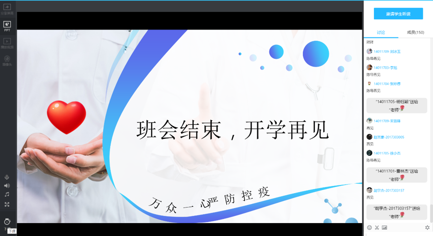 为了响应国家的“停课不停学”的号召,同学们从明天24日起就要在QQ、腾讯课堂、雨课堂等平台进行线上学习。陈智通老师严明了纪律,强调严格按照学校作息时间,提醒同学们做到不旷课、不迟到、不早退、不找人代课、不替人代课、上课时间不做与课堂无关的事;提前准备上课所需的软件、插件,熟悉上课平台的操作,有问题及时通过相关渠道反馈;坚持每日报告健康状况,配合学校做好统计工作;保持健康心态,落实居家学习。同时,陈智通老师也对前段时间同学们关注比较多的问题,如通过什么途径能联系上授课教师、没有教材怎么办、上学期不及格的课程什么时候补考等等,一一做了解答,再次重申3月2日之前不得返校,希望大家等候耐心等候具体返校通知。
