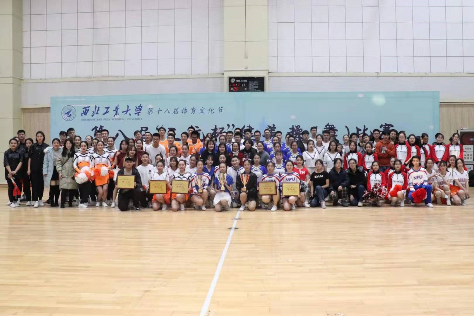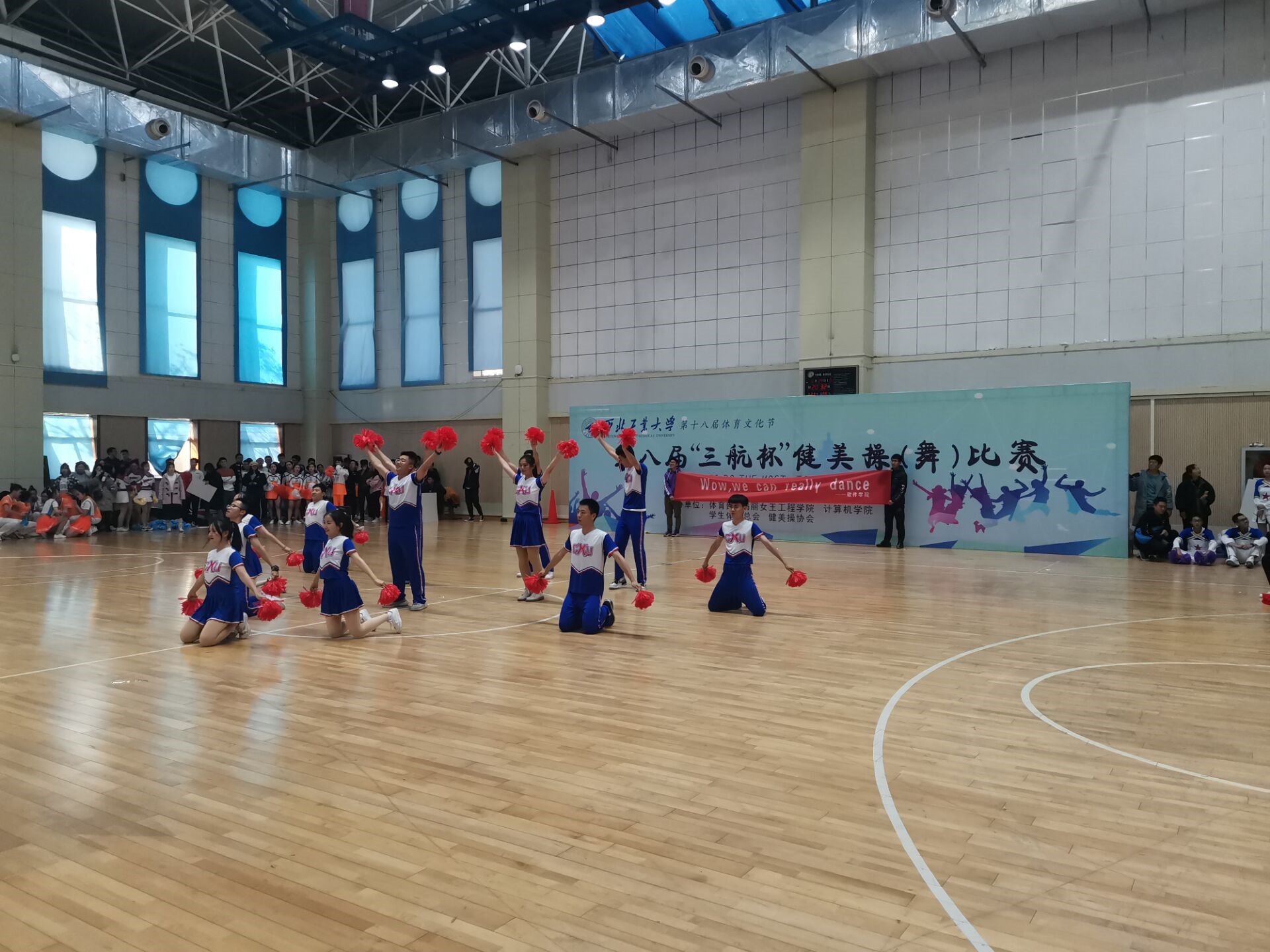 校团委主办的第八届“三航杯”健美操(舞)比赛在我校翱翔体育馆副馆隆重举办,共有来自全校各个学院的16支队伍参加了此次比赛。