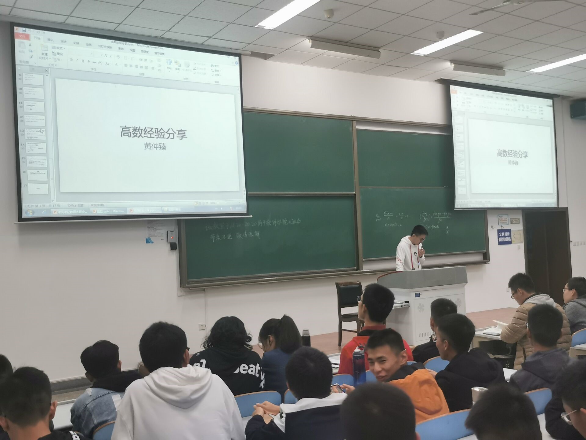 接下来是黄仲臻同学的经验分享,他主要为同学们展示了一些高数例题,然后讲解了一些具体的解题方法,以及在考试中细心的重要性,对同学们面对接下来的考试有一定的指导和帮助作用。