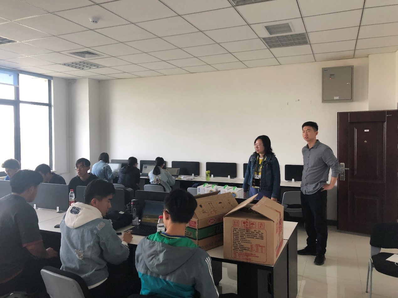 5月2日,张琨走进实验室和云天苑B座女生宿舍,代表学院给正在做数模竞赛的同学带去了牛奶、面包和火腿肠等慰问品,亲切询问了同学们前期准备、参赛队员构成及目前解题进度情况,勉励参赛青年学生在五四青年节到来之际,用自己的实际行动,纪念五四运动百年,发扬五四精神,传承学院数模比赛的优良传统,再创佳绩!