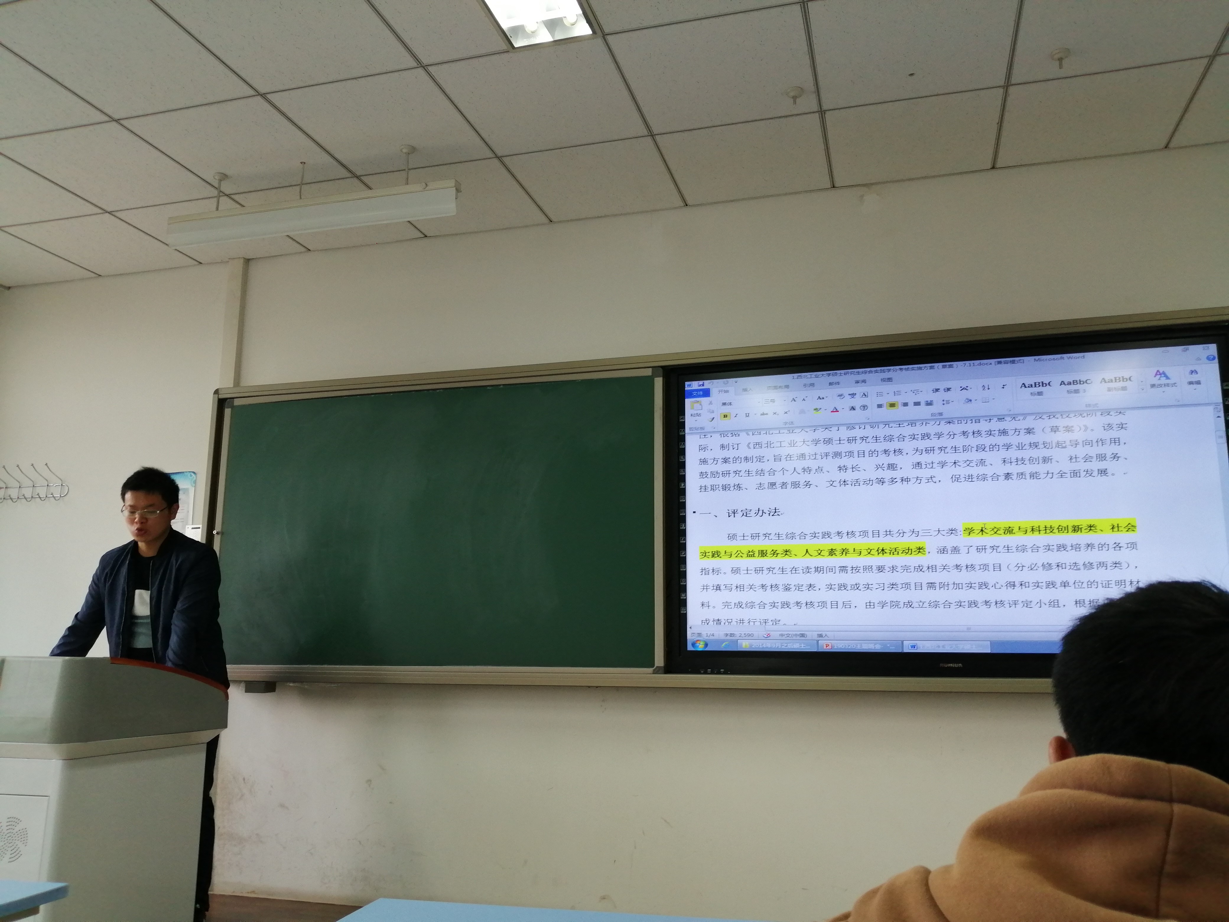 硕士研究生综合实践学分考核实施方案》文件进行解读。《实施方案》主要包括学术交流与科技创新、社会实践与公益服务、人文素养与文体活动等三大类。通过对《实施方案》的解读,促使了大家对自己学业提前进行规划,同时这也有助于大家综合素质能力的全面发展。