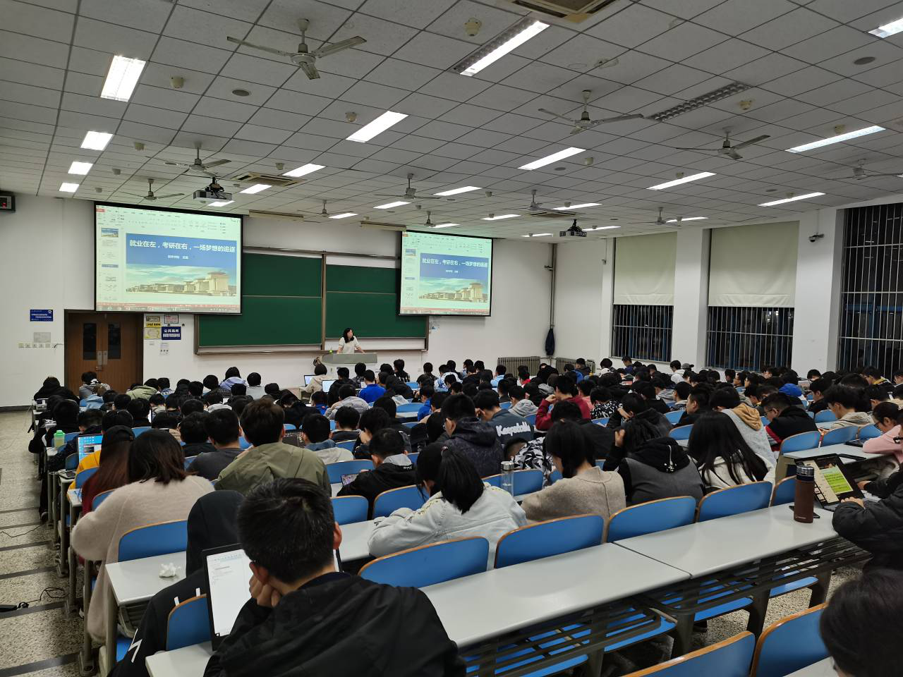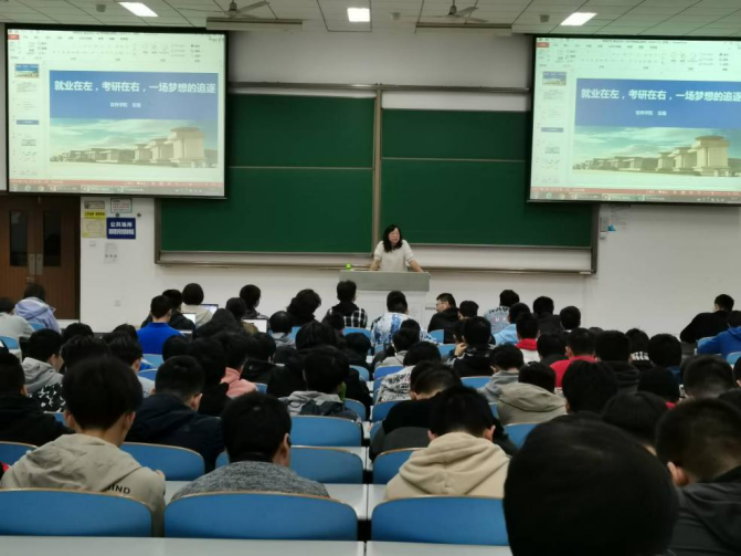 党委副书记张琨为2018级本科生进行了以“就业在左,考研在右,一场梦想的追逐”为主题的职业生涯规划讲座。