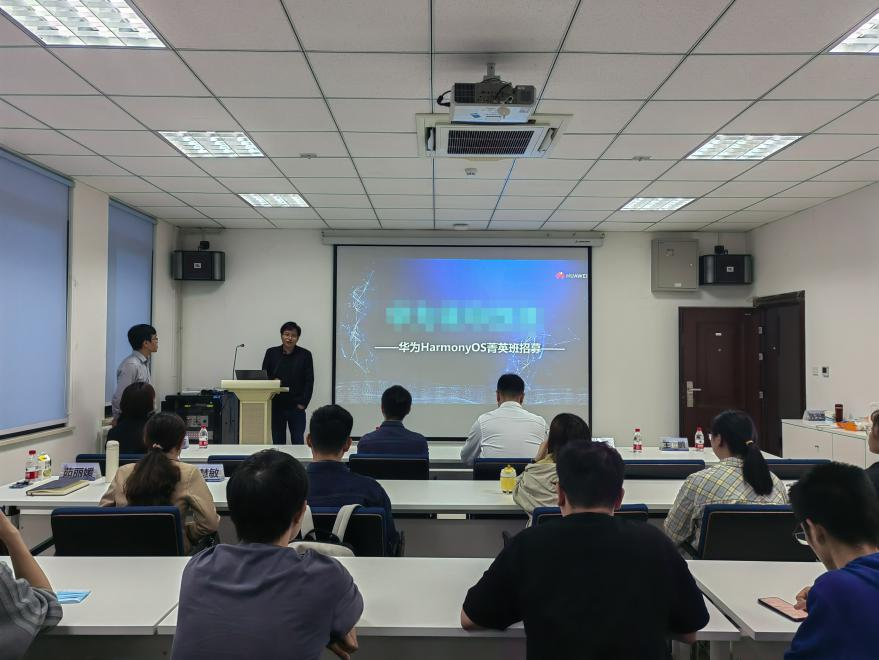 与华为菁英班的合作表达了肯定,并浅谈华为菁英班能够为同学们带来的收获。接下来,华为技术专家龚阿世为同学们做技术分享,向同学们讲述了华为做鸿蒙系统的初心,并以华为已投入商用的产品所构建出的智慧出行、家居智能化、超级通话终端支撑的社交通讯等多个场景为例展现了鸿蒙系统的跨设备业务无缝连续与流转,真切地让同学们感受到软件定义出新产品形态。而后负责招聘的赵蓉老师为同学们介绍了华为菁英班的运营方案,并展示往届图片、学员感想等让大家更加了解菁英班的氛围。