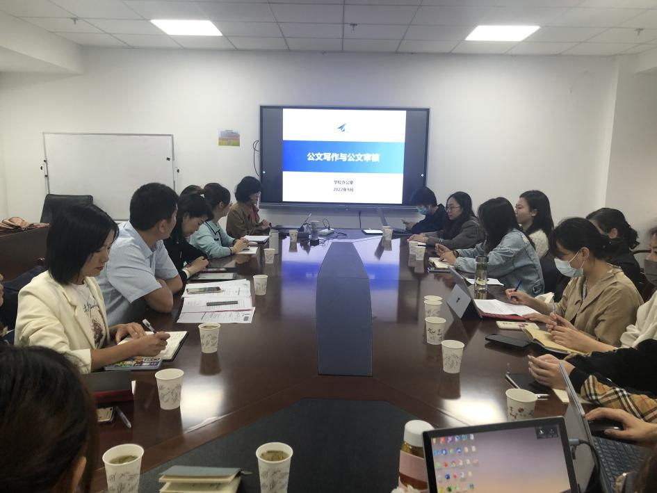 张雯鑫作了题为《推进协同办公建设,提升内部治理能力》的交流,对OA系统建设现状、新版OA系统、OA公共账号操作指南展开介绍,同时对OA操作程序做了示范,表明OA系统的建设和运用是大学现代化治理能力的重要体现,OA系统集办文办事办会为一体,是让师生少跑腿,资源都共享,流程更便捷的具体抓手。张老师的培训和分享使全员职工对OA系统的使用有了更深的了解,加强OA的日常使用,将有效促进学院规章制度建设、工作流程规范、信息高效流转。
