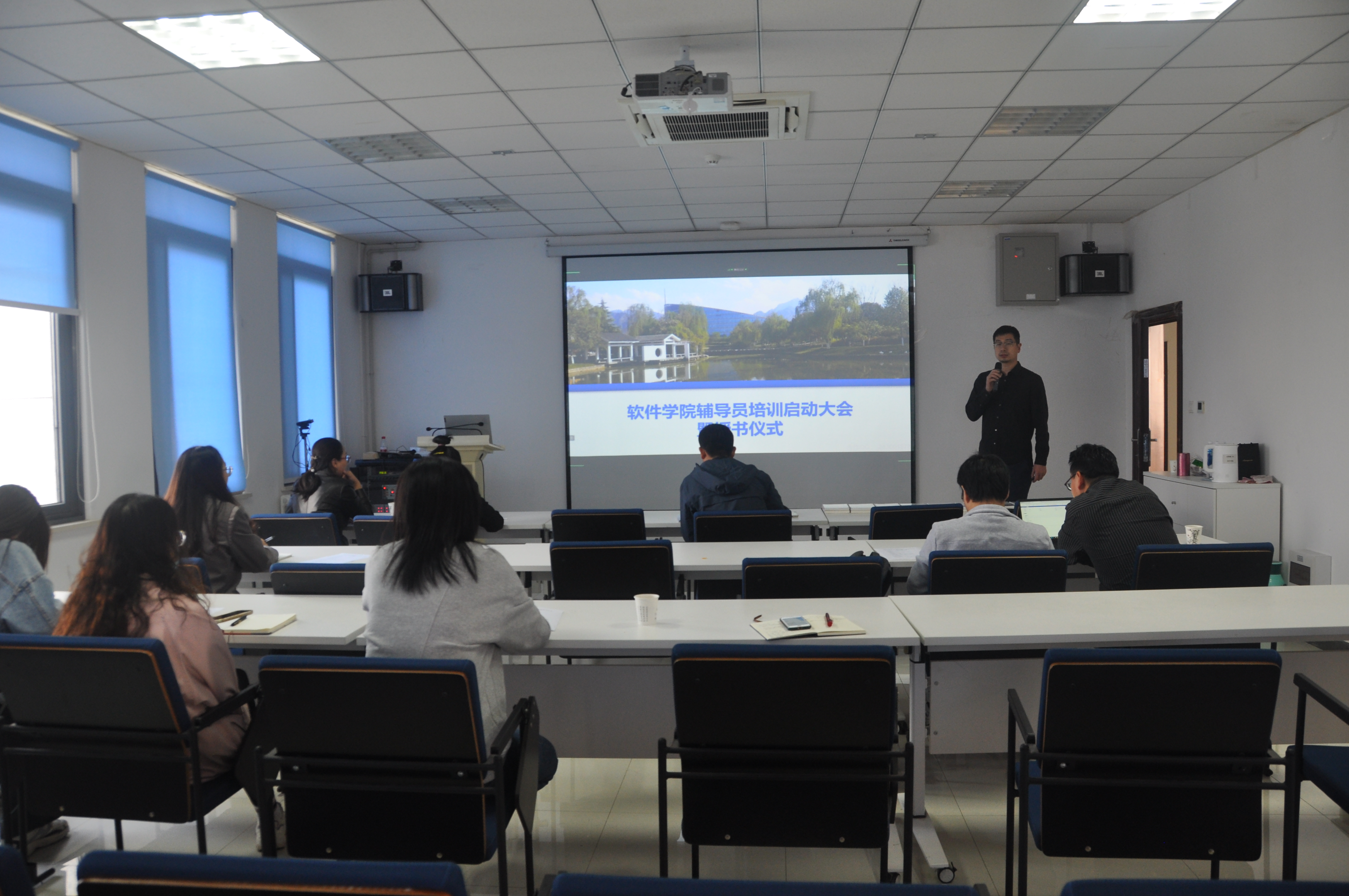 在启翔楼401报告厅召开辅导员培训启动大会暨授书仪式。党委副书记(主持工作)李晗,党委副书记张龙,专职辅导员张记国、高利鹏、吴逾强(线上),以及学生工作助理、兼职辅导员参加会议,特邀学校办公室校务工作科戴卓、妖精动漫