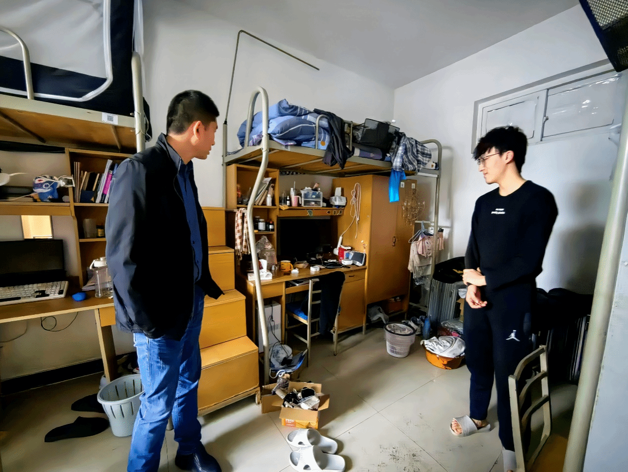 李晗及学工办管理人员还深入走访了各年级学生宿舍,进行安全隐患排查和宿舍卫生检查。通过本次宿舍检查发现大多数学生宿舍的安全意识和卫生习惯良好,但仍存在少量安全隐患,如杂物堆放、纸箱堆叠等。学院后期将进行复查,确保所有问题得到妥善解决。走访中老师们叮嘱同学们要自觉遵守学校各项安全管理制度,提高安全防患意识,注意人身和财产安全、防火和用电安全,要高度重视宿舍安全用电,严禁使用违规电器,共同营造良好的学习生活氛围和文明整洁的宿舍环境。