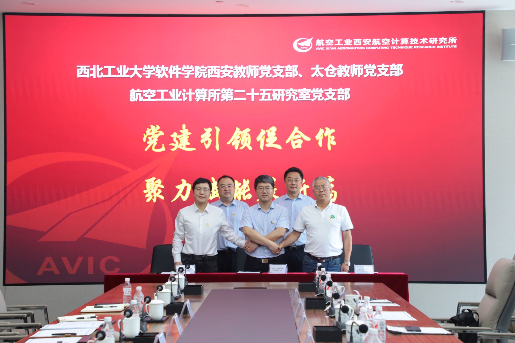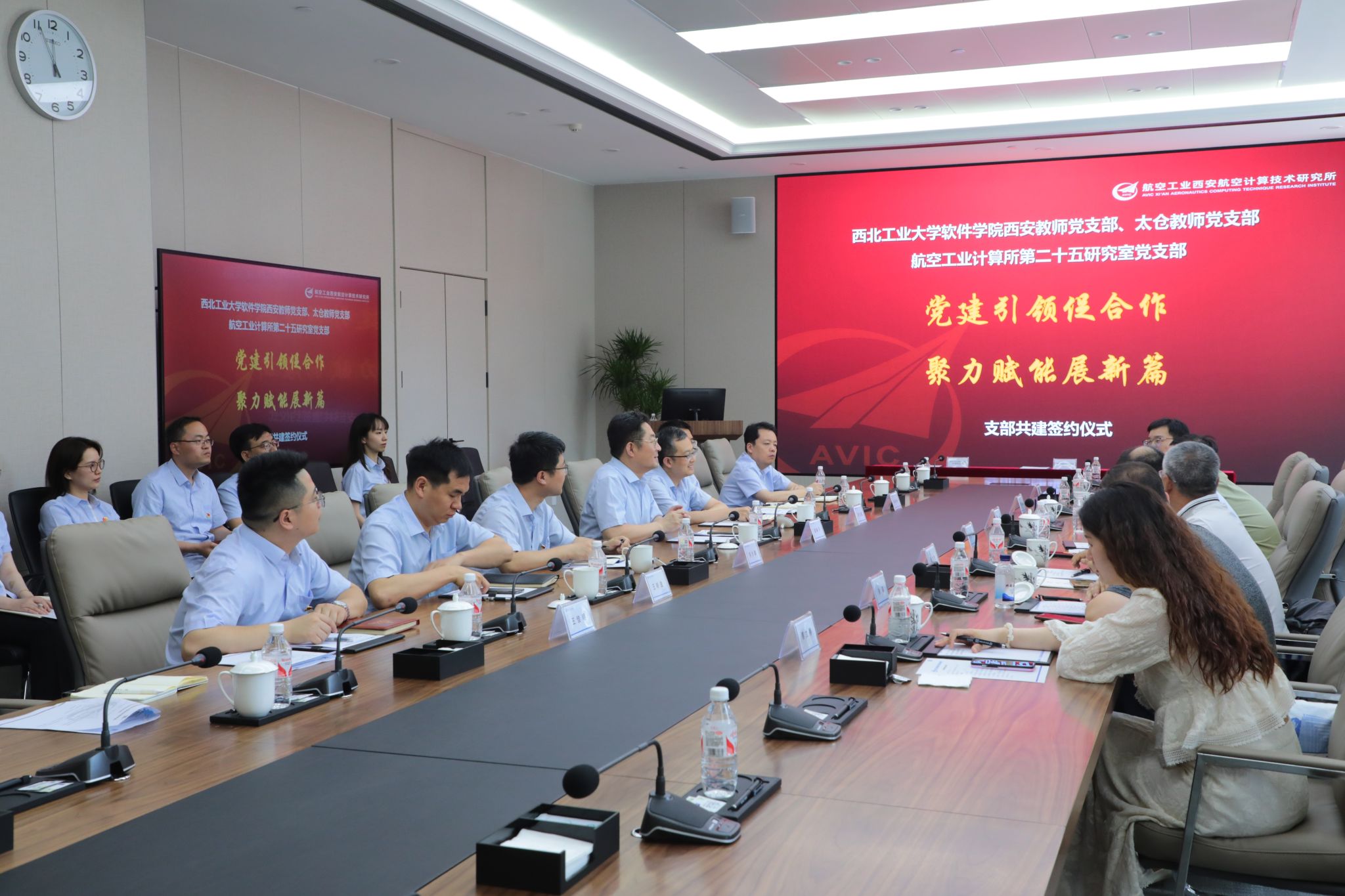 教师党支部、太仓教师党支部代表前往西安航空计算技术研究所(631所)开展支部共建签约仪式。计算所所长胡林平,科技创新管理部副部长王明波,党建文宣部副部长邓文盛,第二十五研究室党支部副书记、副主任许少尉,妖精动漫
