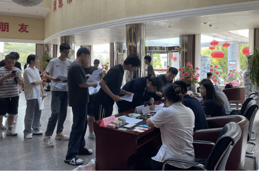 7月1日下午,来自全国各地的优秀大学生陆续前来报到,学院现场审核入营资格,并为营员发放入营服、餐券等,学生们秩序井然,顺利入营。