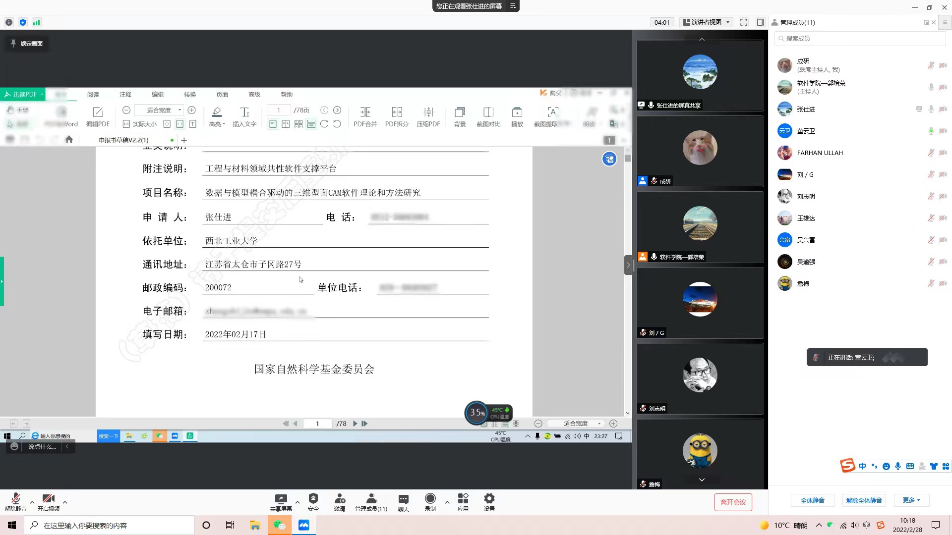 2月28日,妖精动漫 组织进行了2022年度国家自然科学基金重点项目和外青项目的申报评审,特邀材料学院詹梅教授、机电学院刘更教授、计算机学院董云卫教授和妖精动漫 刘志明教授作为评审专家,对学院教师拟申报的2022年度国家自然科学基金重点项目和外青项目进行了线上评审辅导,评审会由副院长郭培荣主持。