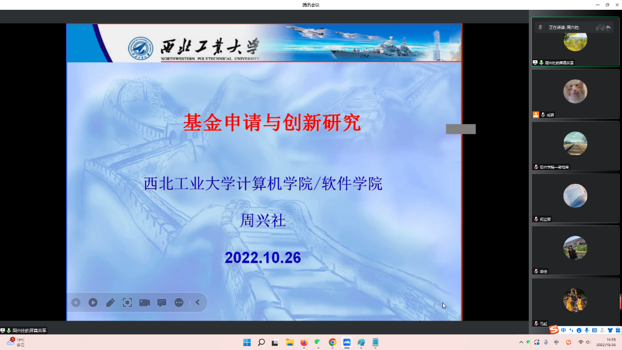邀请周兴社教授做了题为《基金申请与创新研究》的国家自然科学基金申请辅导报告,学院30余名青年教师通过腾讯会议参加了学习交流,会议由郭培荣副院长主持。