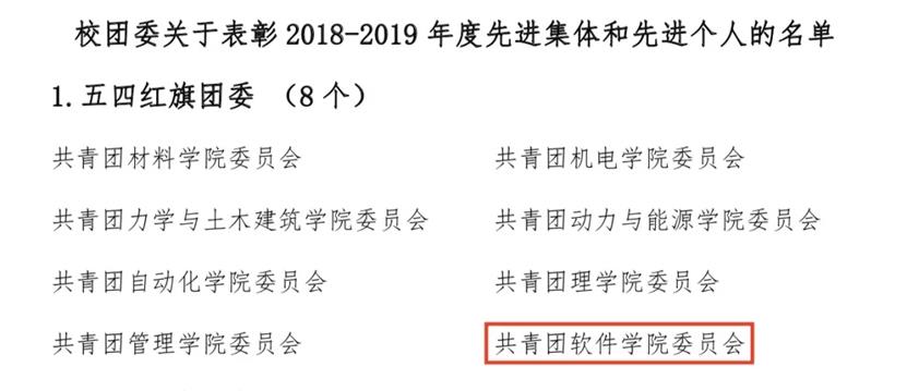 学院获129合唱比赛第四名,精英辩论赛第一名,三航杯创业大赛和数模比赛优秀组织单位奖,学生会被评为“优秀学生分会”,软件协会被评为 “五星级社团”。