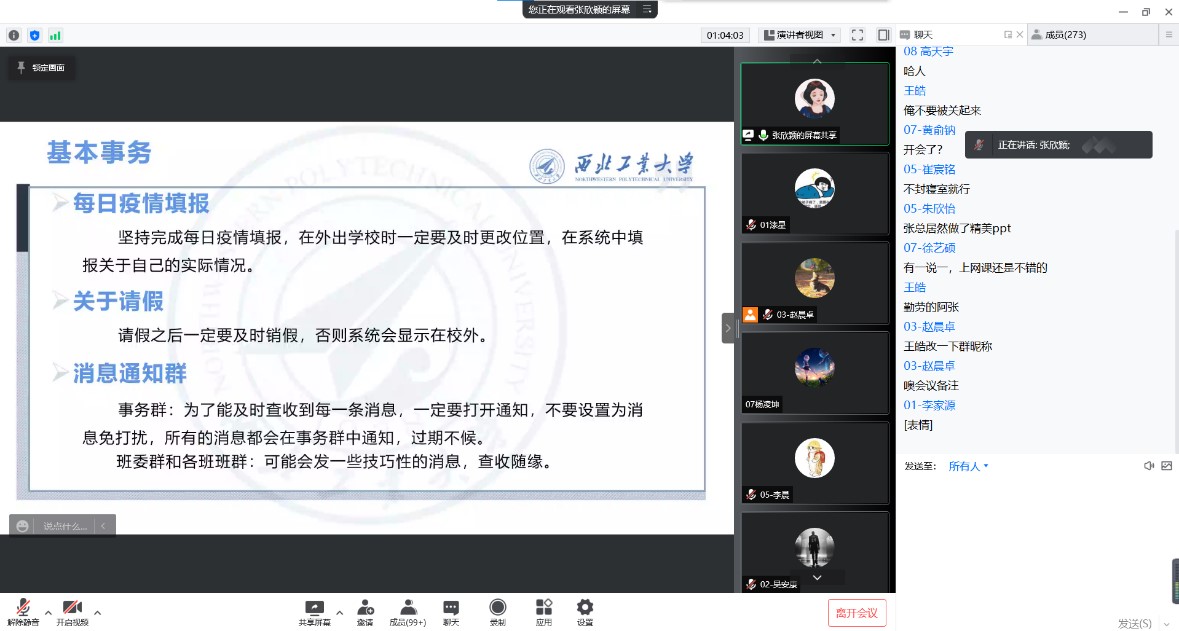 团委书记兼2020级辅导员张欣颖做出的讲话也代表了学院的要求,她详细向同学们普及了新冠病毒特点、传染途径和防控方法等内容,要求同学们一定要从思想上提高认识,时刻紧绷疫情防控之弦,做好个人防护措施,科学佩戴口罩,勤洗手,保持1米安全社交距离;及时按要求进行核酸检测,积极接种疫苗;理智对待疫情,做到不信谣、不传谣、不造谣,理性应对疫情形势;保持良好心态,避免不必要的焦虑和恐慌。