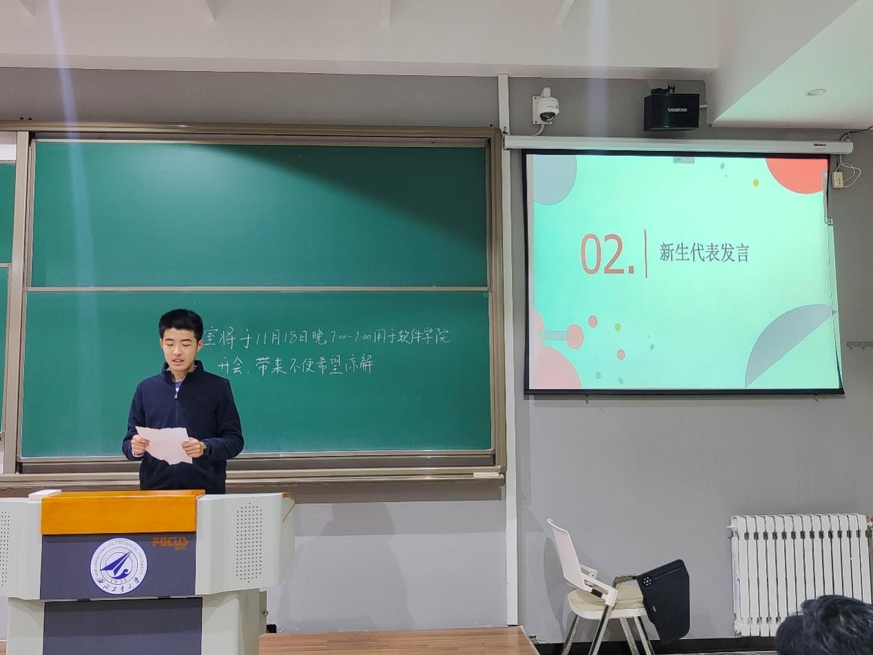 随后,大一新生代表冯波翰同学进行发言,他讲述了自己来到妖精动漫