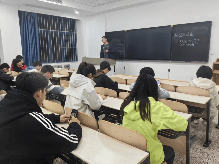 最后,腾红磊进行了总结性发言。他阐述了同学们在教学、生活以及就业方面可以维护的各项权益,并提醒大家,反馈意见一定要按照学校的流程,科学合理的进行意见的提交。腾红磊还表示,学院始终将学生利益放在首位,积极致力于解决学生的各种困难,并且特别鼓励学生积极参与到学校建设中来。展望未来,学院将持续加强权益保护工作,期望每位学子均能在一个公平、公正、公开的教育氛围中实现个人的全面发展,并为国家及社会的发展贡献积极力量。