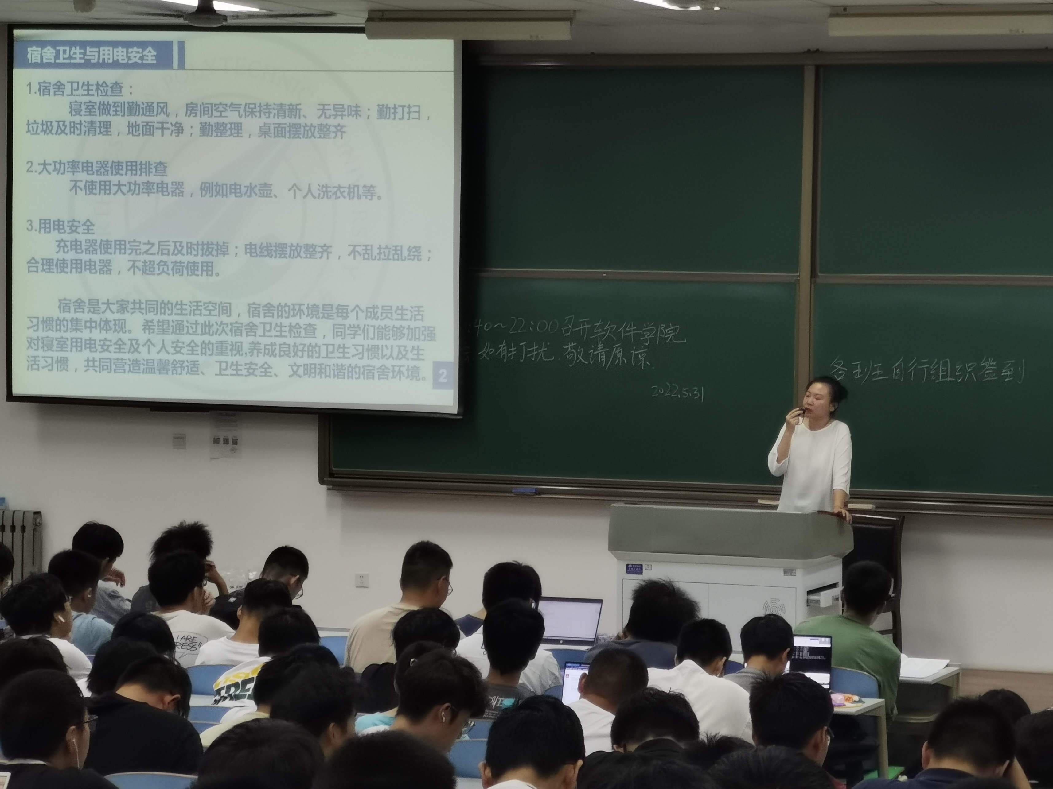 张欣颖老师从宿舍安全、流行病预防、电信诈骗、就业规划、加强体育锻炼五个方面全方位辅导2020级本科生的校园生活情况。她强调,宿舍是大家共同的生活空间,要加强对寝室用电安全及个人安全的重视,养成良好的卫生习惯以及生活习惯,共同营造温馨舒适、卫生安全、文明和谐的宿舍环境;初夏是包括胃肠道疾病、皮肤病、呼吸系统疾病和红眼病等流行病高发的时节,日常生活中注意饮食卫生和个人卫生,一旦出现流行病症状,应及时去医院就诊;提醒同学们提高辨别能力,高度警惕电信诈骗,防止上当受骗;认真总结学习、实践、竞赛经历,及时更新个人简历,认真思考毕业去向,提前布局职业发展;加强体育锻炼,促进身心健康,从而提高学习和工作效率。