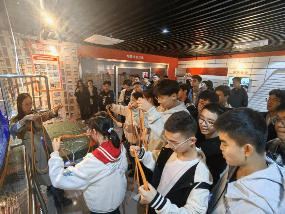 讲解人员从自然灾害、校园安全、消防安全、卫生健康和交通安全等方面向学生详细讲解了相关安全知识,同时依托安全教育体验馆中的专业设备,通过人机互动、情景模拟、视频演示等形式,利用“地震小屋”“高空缓降”“结绳训练”“心肺复苏”等直观的形式进行现场教学,提升学生们在灾难和危险来临时沉着应对并解决问题的能力。