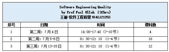 课程名称:软件工程质量(Software Engineering Quality)