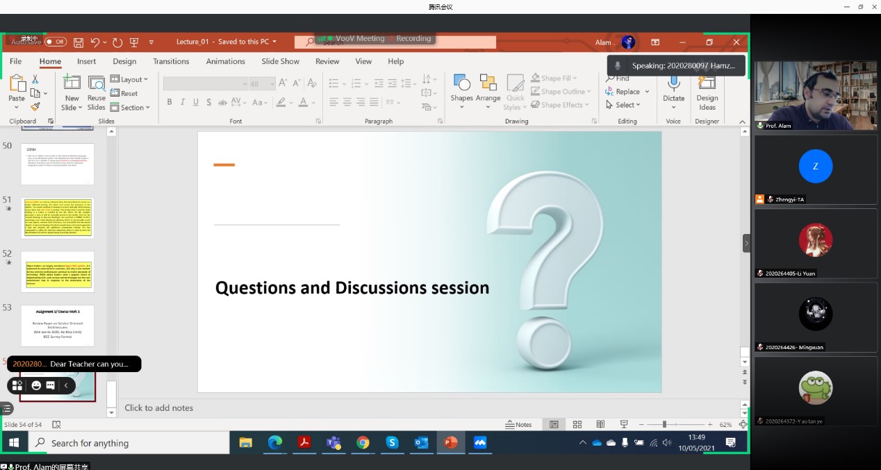 “面向服务架构”(Service Oriented Architecture)全英文课程在线上顺利开课,本次课程邀请英国伦敦南岸大学副教授Muhammad Alam主讲。