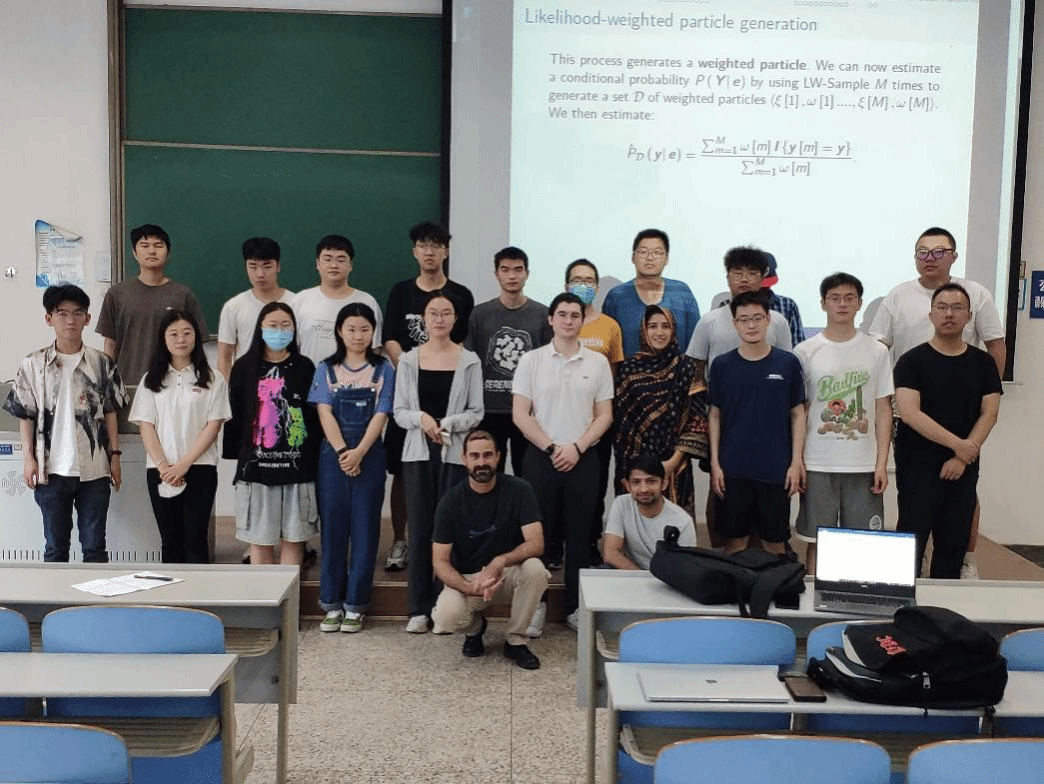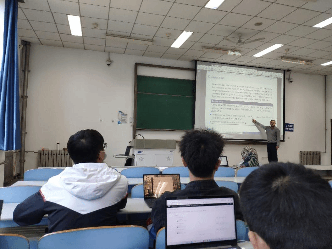 授课期间,Josue Antonio教授为了让同学们更好的理解理论内容,举了非常多的例子以便同学们快速的理解知识点。在讲D-分离准则时,教授给同学们充足的时间自由讨论交流,随后对同学们进行一一提问以便每个同学都掌握这个重要的知识点。