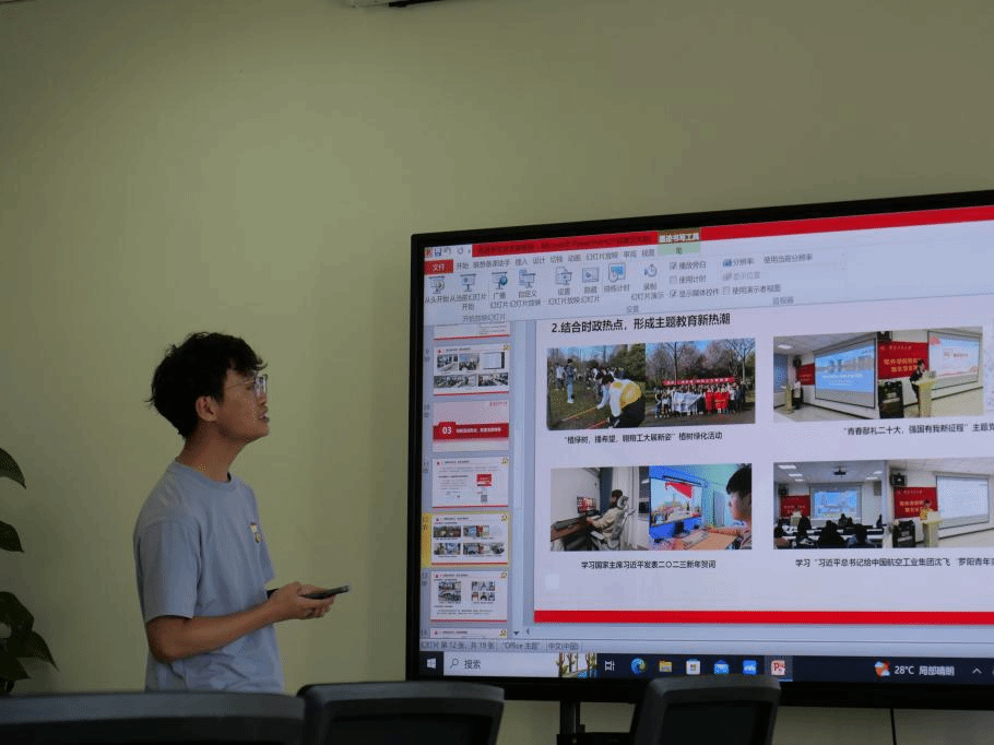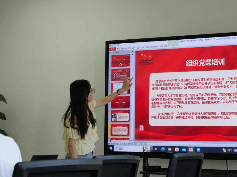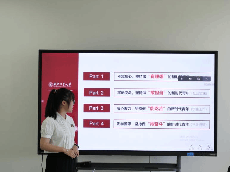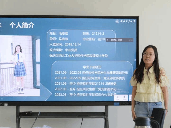 随后,评选学生党建先进个人,白梦娇和毛夏煜两个人分别从党建工作经历、支部的日常工作等方面展开答辩,展现了党员干部担当奋进的精神风貌。