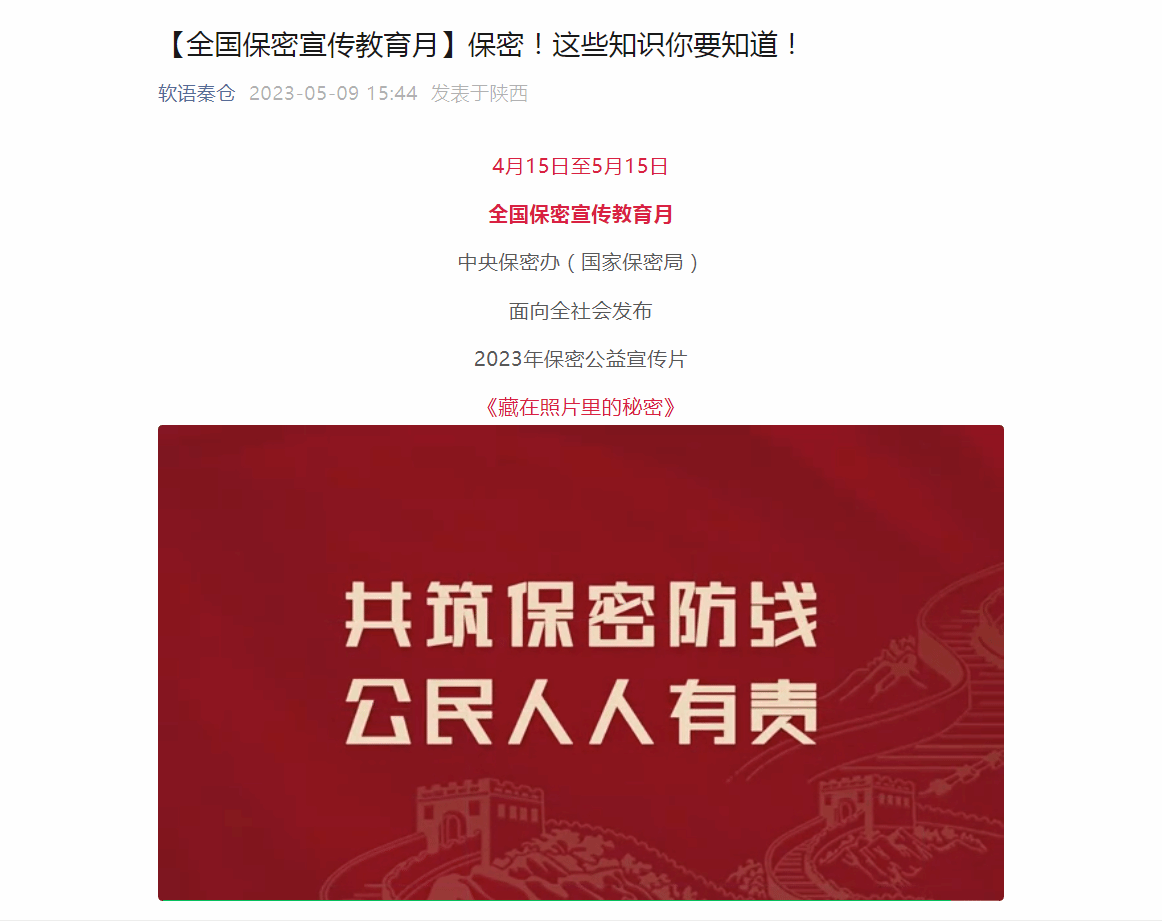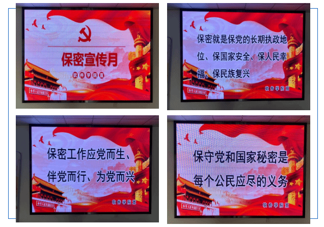 5月上旬,学院还利用官微平台、电子屏幕等载体,多形式、多渠道推送、播放保密公益宣传片、保密提醒标语等,开展保密宣传教育,积极营造“人人学保密、人人知保密”的浓厚学习氛围。
